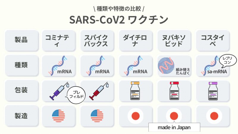 新型コロナワクチンの種類・特徴【5製品の比較】
